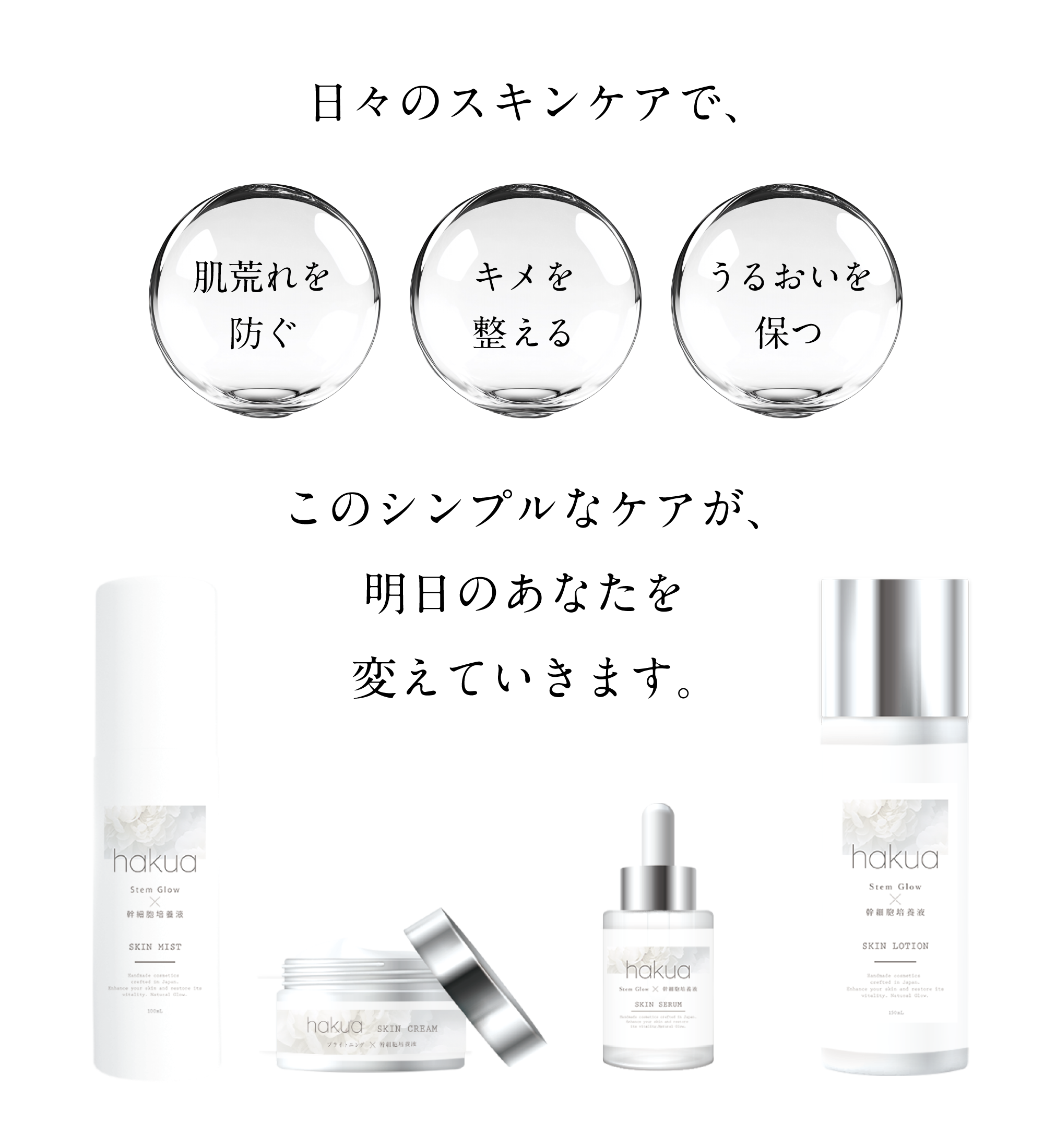 肌にうるおいと透明感を与えながら、まるでうまれたてのような、ふっくら弾む素肌美を目指せます。